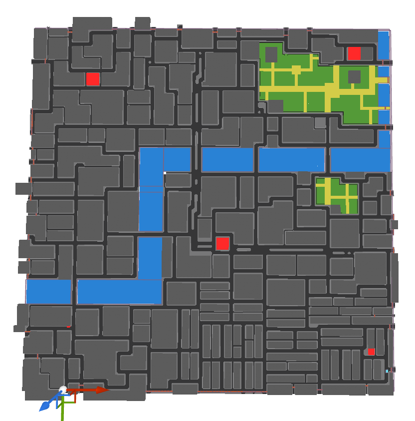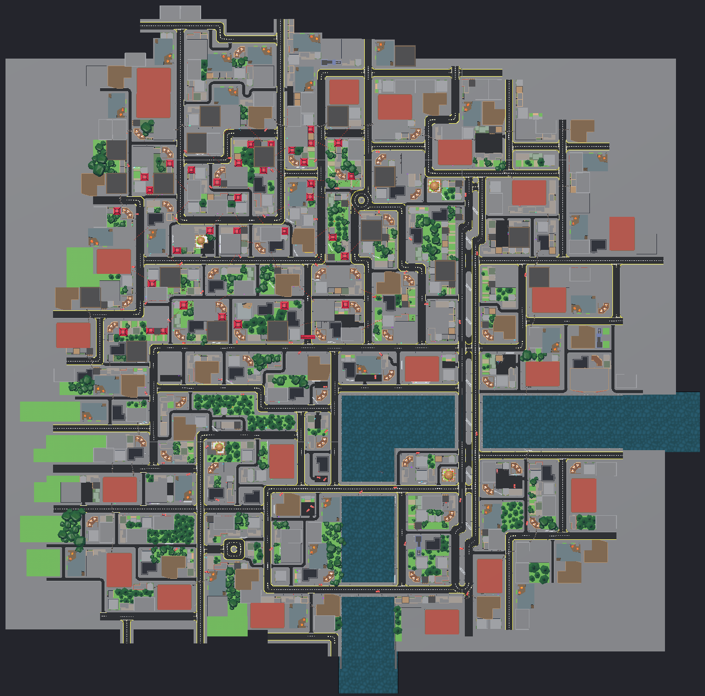 Final version of the main level; the “Chinatown” district was already mostly completed once the decision to cut down the map was made.