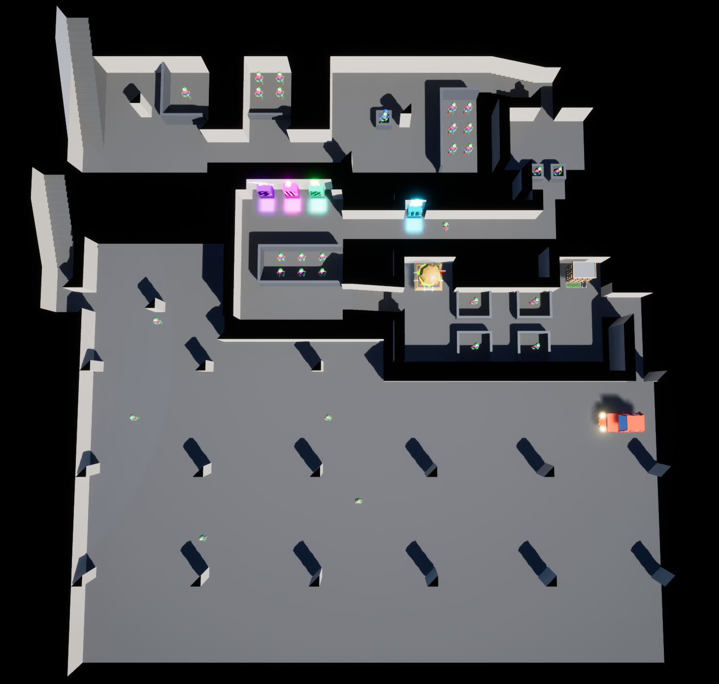 Top Down Map of the Tutorial Level; this level would take place in the restaurant’s basement and would teach the player the game’s mechanics.